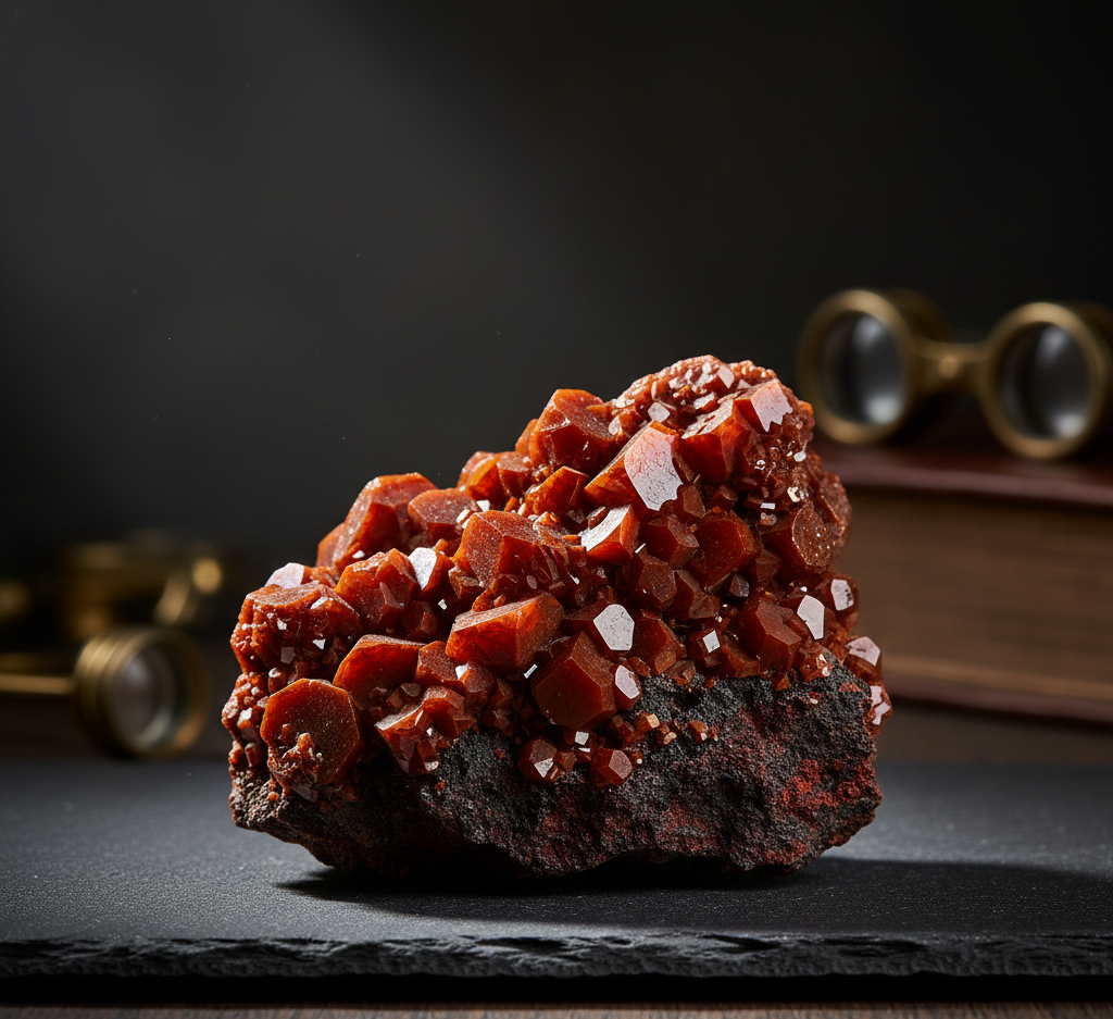 This stunning Red Vanadinite crystal cluster displays vibrant, naturally formed hexagonal crystals on a dark matrix, creating a striking visual contrast. Highly valued by mineral collectors, Vanadinite is known for its energizing properties and its bold red color that enhances any display shelf, office décor, or stone collection. Each cluster is naturally grown, ensuring unique patterns and exceptional brilliance. Perfect for crystal enthusiasts, interior decorators, and those seeking a rare mineral specimen with strong aesthetic and collectible appeal.