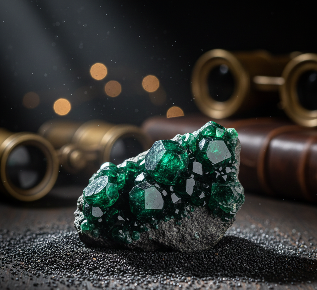 Museum-Quality Tsavorite Garnet Cluster: Brilliant Deep Green Crystalline Formation on Natural Matrix, Perfect for Collectors.